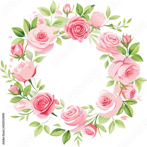 Watercolor Pink Rose Flower Wreath Illustration