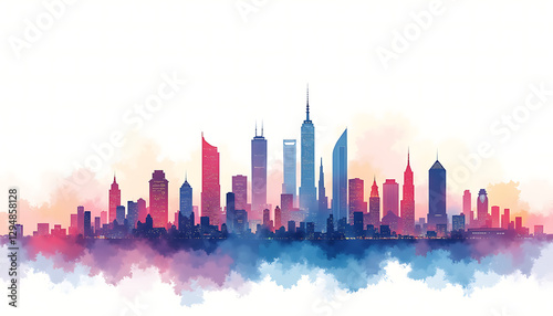 city, skyline, watercolor, colourful, urban, architecture, building, landscape, illustration, abstract, artistic, city landscape, modern, downtown, horizon, evening, painting, panorama, metropolis, contemporary, vibrant, purple, blue, pink, red, day, clear, design, visual, structure, silhouette, background, capital, tour tourism, travel, city lights, nature, creativity, culture, environment, summer, exploration, beauty, tranquil, peaceful, inspiration