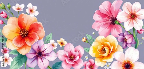 Watercolor spring flowers, flat floral elements for cards & wallpaper, clip art, invitation