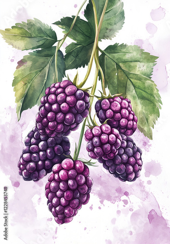 watercolor style of raspberries on white
