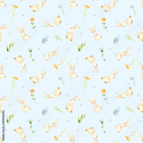 Watercolor woodland seamless pattern with cute little Forest Animals for kids.