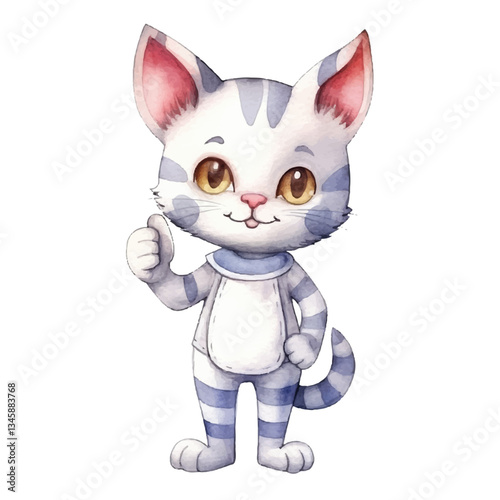 watercolors Cute cat with thumbs up illustration