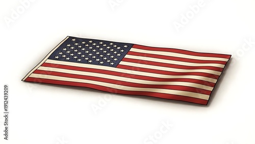 Waving American flag on a white surface