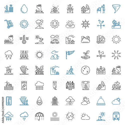 weather, icon, set, vector, ice, drought, cloudy, moon, sun, umbrella, cloud, storm, winter, hat, police, box, water, tornado, temperature, hurricane, landslide, rain, graphic, app, cold, mercury, watering, vane, wind, signs, avalanche, raining, colours, thermometer, weathercock, sunset, snowing, pack, large, dripped, symbol