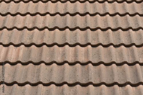 weathered terracotta roof tiles under the sun - strong wavy pattern shadows