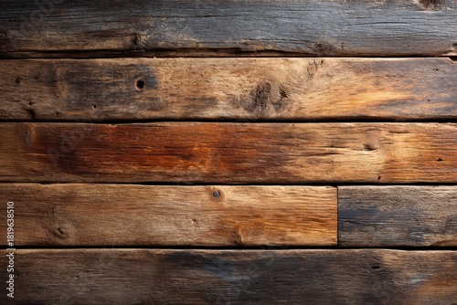 Weathered Wood Grain: A detailed and textured close-up of aged wooden planks, revealing the natural patterns, knots, and variations in tone of the timber.