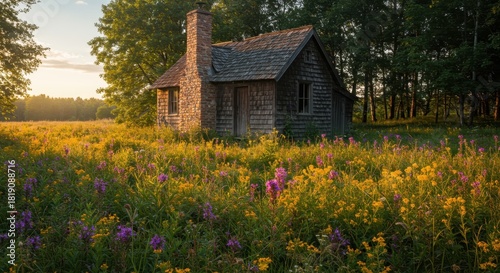 summer, weathered, vegetation, old, yellow, dawn, chimney, field, rural, foliage, stone, charming, spring, wood, forest, meadow, landscape, horizon, get-away, dusk, bloom, wilderness, countryside, grass, evening, light, flower, wood, serenity, green, remote, sunset, sky, tranquil, outdoors, tree, peaceful, picturesque, purple, cabin, secluded, sunrise, idylli, nature, rustic, dwelling, growth, sunlight