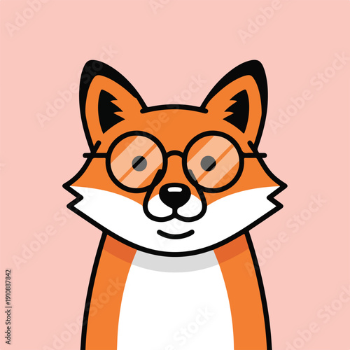 fox, cartoon, goggles, portrait, orange, black, white, pink, animal, mammal, clever, smart, cute, design, art, illustration, graphic, simple, modern, flat, style, minimal, icon, character, mascot, avatar, clip, drawing, furry