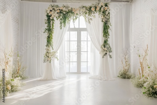 Wedding backdrop aesthetic indoor window natural light minimalist floral plant decoration background