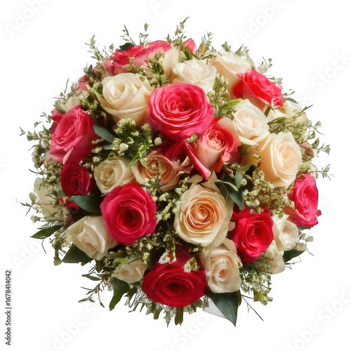 Wedding bouquet roses, isolated on white and transparent background.