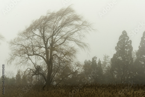 Weeping willow in mist