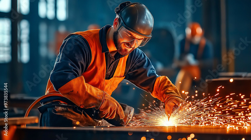 welding, welder, men at work, industry, work, metal, construction, steel, industrial, weld, safety, mask, protection, working, manufacturing, occupation, spark, factory, repair, manual, tool, iron, labor, job, light