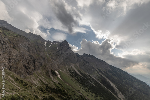 mountain, countryside, heaven, nature, vale, weather, pretty, calm, panorama, cloud, peak, scenic, alpen, travel, alpine, view, snow, spring, hike, trekking, season, bavaria, bavaria, german