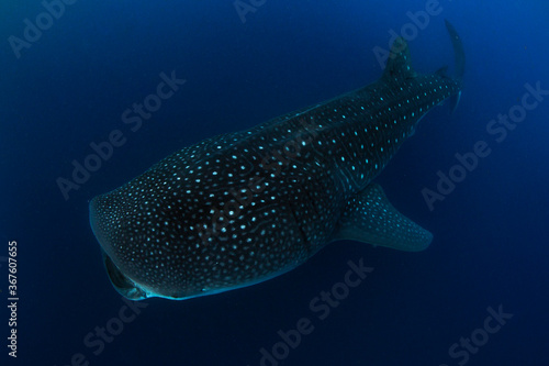 Whale shark swimming in the warm blue waters off of Cancun