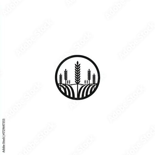 wheat, field, logotype, design, graphic, illustration, agriculture, farming, black-and-white, minimalist, linear, circular, branding, vector, crop, plant, silhouette, symbol, icon, nature, rural, harvest, grain, simple, logo design, monochrome, isolated, copy space, outline, style, art, design element, image, picture, food, rural scene, farm