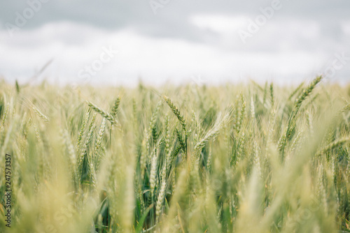 field, wheat, agriculture, crop, sky, nature, farm, summer, grain, cereal, plant, harvest, barley, landscape, rural, blue, food, grass, green, yellow, corn, ear, ripe, growth, gold, background, beautiful, countryside, farmland, sunset, rye, gold, ear, scenery, farming