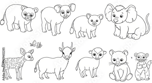 animal, line art, black-and-white, illustration, cute, cartoon, simple, whimsical, childlike, drawing, vignetting, wildlife, mammal, cervid, bear, polar bear, lamb, goat, fauna, nature, white, black, graphic, art, design, artwork, image, picture, digital, graphic design, clip art, outline, silhouette, printable, template, decorative, pattern, craft, children, children, educational, learn, fun, playful