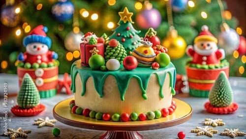 cartoon, christmas, cake, festive, holiday, dessert, icing, decoration, celebration, sweet, treat, sugar, baking, joyful, cheerful, colourful, seasonal, party, festive season, pastry, creativity, fun, whimsical, merry, winter, tradition, illustration, design, animated, epicure