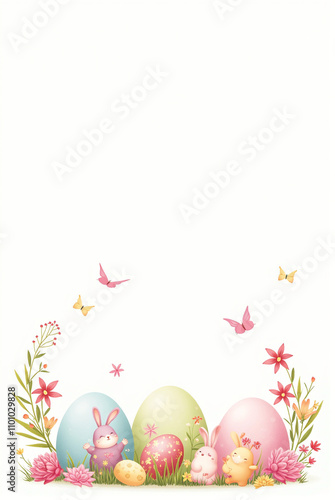 Whimsical Easter Bunny Mockup with Colorful Eggs and Floral Accents