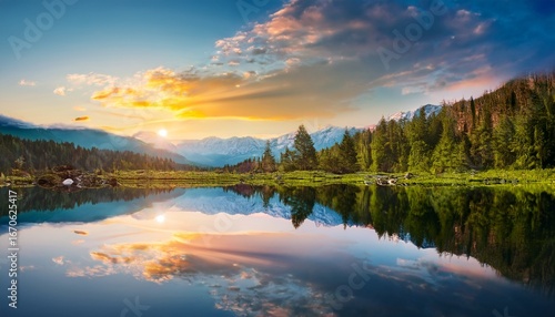whimsical mirror landscape with vibrant reflections and serene atmosphere for creative exploration