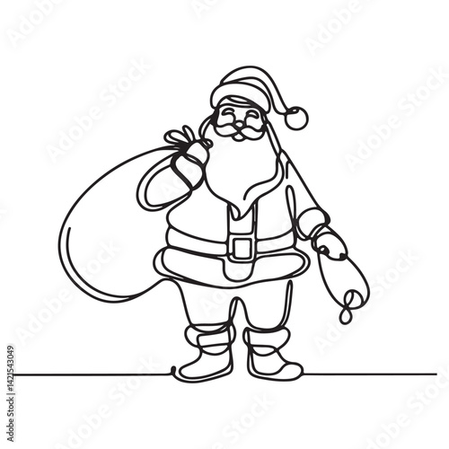 Whimsical Santa Claus Delivering Presents Single Line Art Illustration