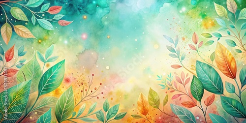 Whimsical Watercolor Botanical Illustration Featuring Vibrant Autumnal and Spring Leaves on a Soft, Dreamy Background