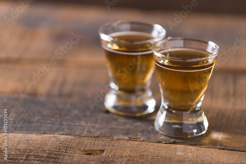 whiskey in glass on wood background