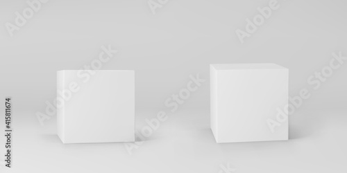 White 3d cubes set with perspective isolated on grey background. 3d modeling box with lighting and shadow. Realistic vector icon