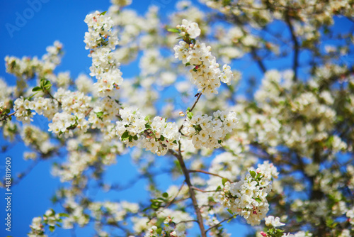 white apprle tree in full bloom on a spring day