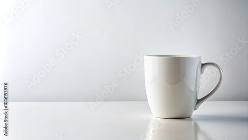 white blank coffee mug on top of table on white background