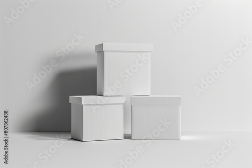 White boxes stacked on top of each other on a white surface