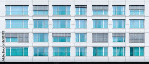 White Building Facade With Rows Of Light Blue Windows