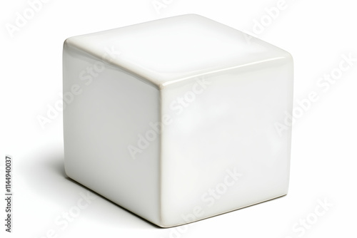 White Ceramic Cube Mockup, Studio Shot, Blank, Product Display, Isolated Background.