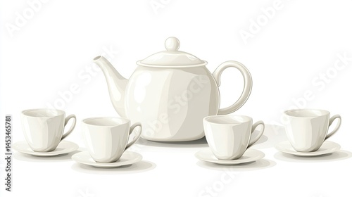 tea, teapot, cup, saucer, ceramic, white, set, kitchen, china, tableware, porcelain, hot, warm, drink, morning, afternoon, evening, breakfast, lunch, dinner, elegant, simple, classic, comfort, home, cosy, pretty, modern, illustration, isolated, flat, design, drawing, vector, style, object, still, life, tea-party, arrangement, display, image, product