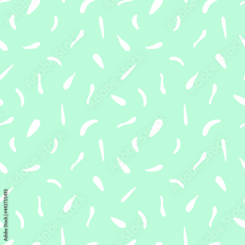 White chamomile petals have fallen from the flowers and are flying. Seamless abstract pattern on a sky blue background. For printing on fabrics, textiles, paper, interior design. Vector graphics.
