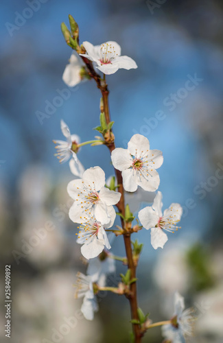 flower, spring, tree, blossom, tree branch, bloom, blooming, flower, plum, plant, season, blue, garden, leaf, beautiful, macro, floral, cherry, colourful, white, nature, herbal, fruit, sky, background, flora, closeup