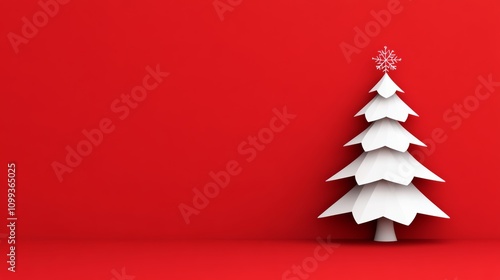 White Christmas tree is standing on a red background. The tree is the focal point of the image, and the red background adds a warm and festive atmosphere