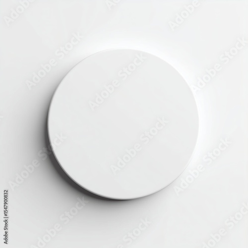 White circular button with transparent acrylic texture on clean white background, 3D rendered top view minimalist mockup for UI design, isolated copy space for text or branding.