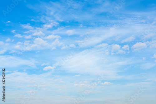 White clouds in the blue sky. Light heavenly background. Natural background.