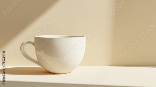cup, hot drink, tea, white, beverage, porcelain, ceramic, light, beige, surface, shadow, still life, object, minimalism, photo, studio, photo, product, design, home, interior, isolated, natural, lifestyle, elegant, smooth, empty, detail, morning, afternoon, simple, clean, sunlight, still, bright, subtile, copy, space, minimalist, display