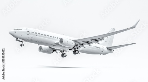 White Commercial Airplane Taking Off Against Minimalist Background