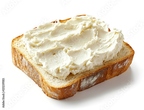 white cream cheese spread on the bread with no wrinkles, isolated on a pure white background