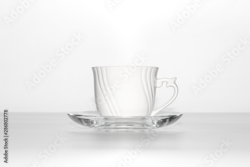 White cup and saucer on a white background