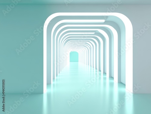 white curved lines creating an arch with a circle in the middle on a teal background