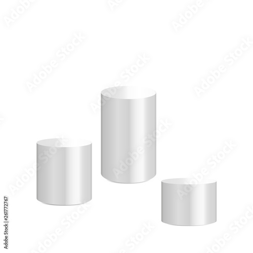 White cylinder stand isolated on white background. Platform, podium to advertise various objects. Vector illustration