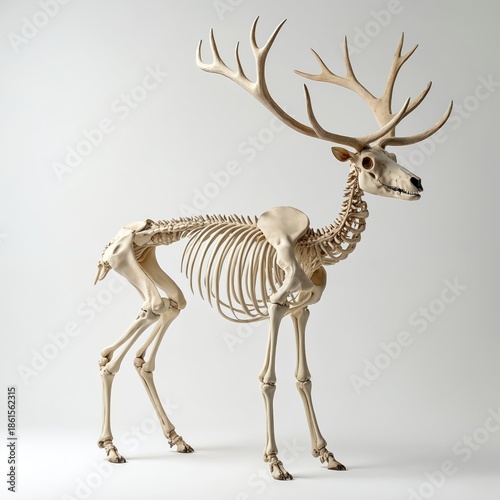 cervid, skeleton, antler, skull, bone, animal, wildlife, nature, anatomy, science, museum, cervid, illustration, white, background, pale, light, studio, natural, earthy, organic, beige, ivory, bone, taxidermy, specimen, research, study, biology, zoology, education, learning, display, exhibit, natural history, forest, timberland, hunting, trophy, dead, death, remain, creepy, skittish, halloween