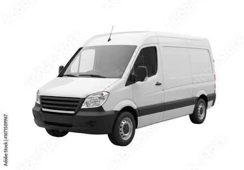 White delivery van parked on a city street with blurred buildings in the background, isolated on white background