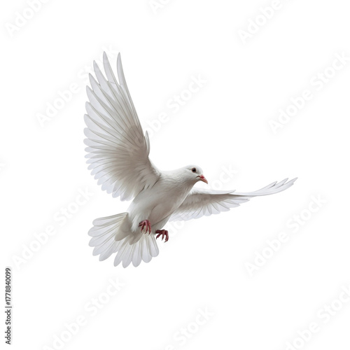 White dove flying isolated on transparent background , a beautiful symbol of peace and love