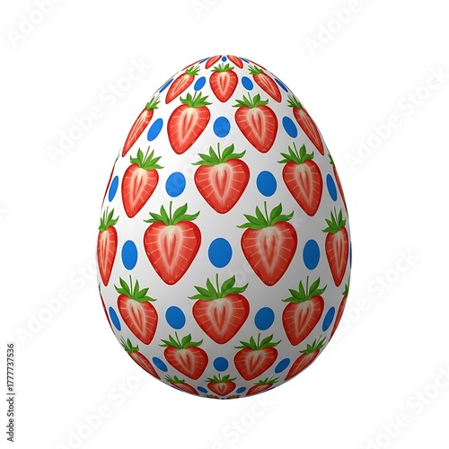 White Easter egg with strawberry and blue dot pattern