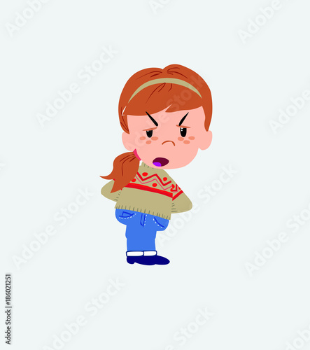 White girl with sweater is slightly angry.